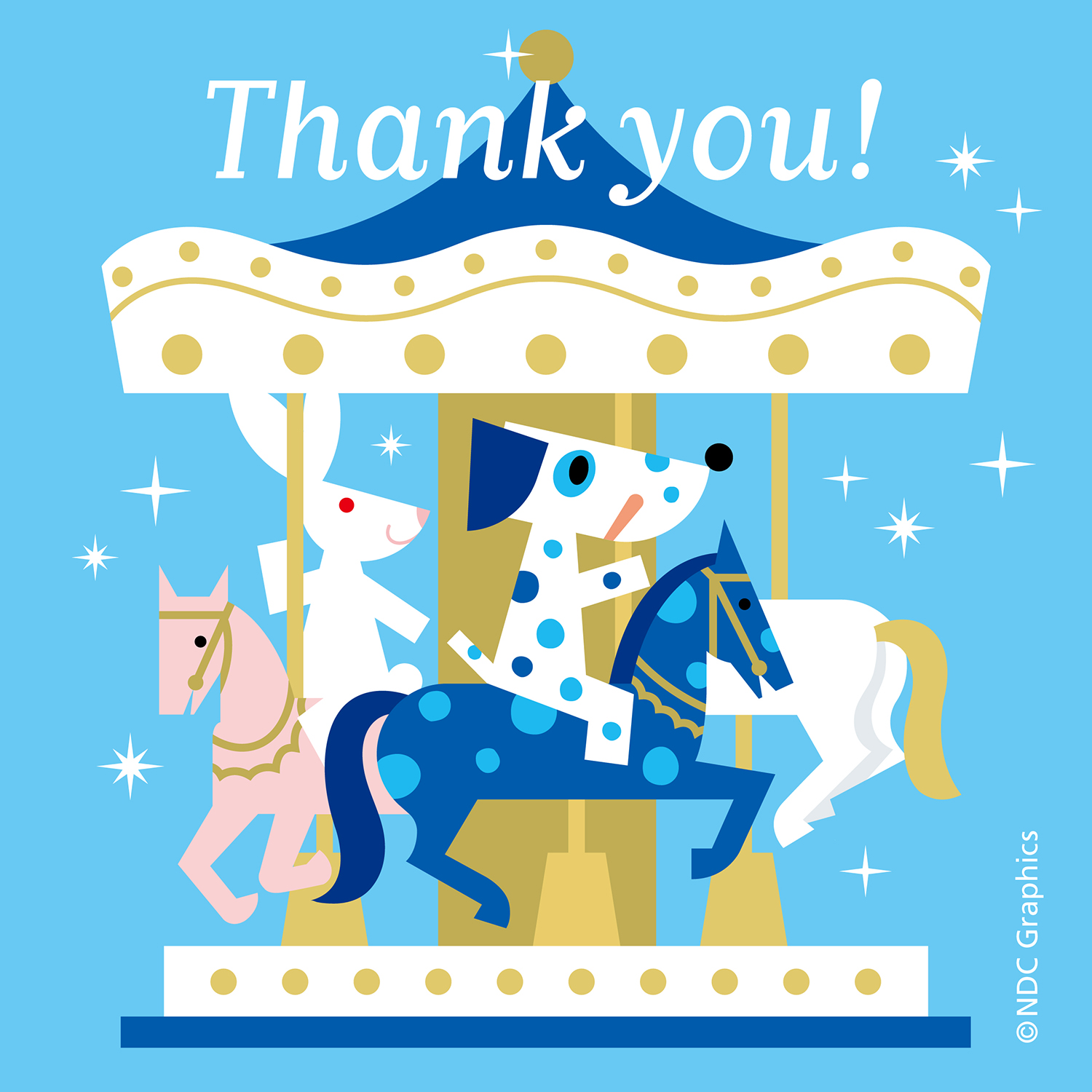爽やかな水色をバックに、音符に乗ったブルーダルがデザインされた...